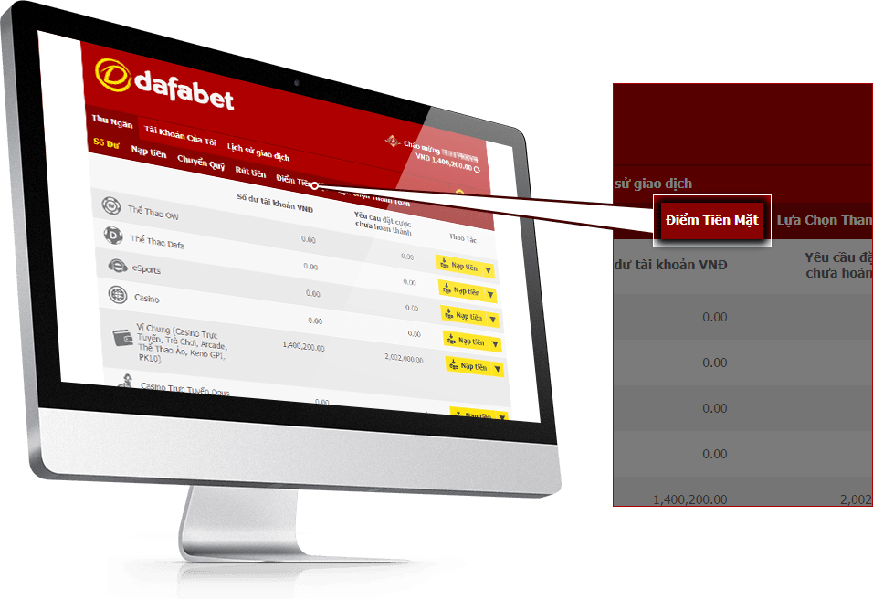 Điểm Tiền Mặt của bạn sẽ được quy đổi thành tiền ở ví sản phẩm “Casino Trực Tuyến, Trò chơi & Arcade và Thể Thao Ảo”. Bạn có thể sử dụng ngay số tiền thật này để chơi ở trang Trò Chơi tiếp hoặc rút ra.